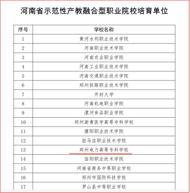 鄭州電力高等?茖W校入選河南省首批示范性產(chǎn)教融合型職業(yè)院校培育單位