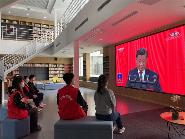 為方便師生觀看二十大開幕會,學院辦公樓、圖書館、教室、廣場、操場、宿舍樓等場所的電子屏全部播放開幕實況,及時宣傳報道二十大精神,積極宣傳二十大召開盛況和相關新聞。