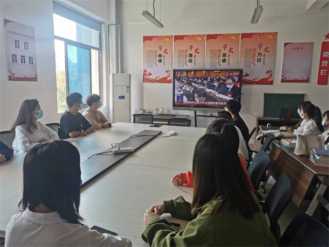 輔導員們深入學生群體,在會議室、在宿舍與學生共同收看開幕式實況。學生們紛紛表示,作為一名大學生,應當時刻追隨黨的腳步,在思想上向黨靠攏,行動上向黨學習。