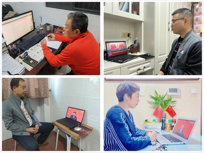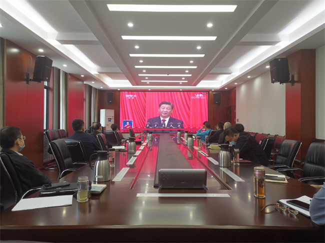 受疫情形勢(shì)影響,堅(jiān)守在校園抗疫一線的院領(lǐng)導(dǎo)在厚德樓418會(huì)議室集中觀看大會(huì)直播。