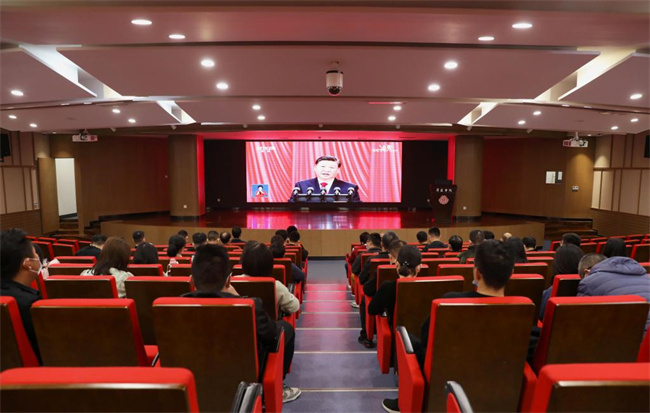 結(jié)合疫情防控實(shí)際,該校分別在國際會(huì)議廳和雙創(chuàng)大講堂設(shè)置主會(huì)場(chǎng)和分會(huì)場(chǎng),在校的校黨委理論學(xué)習(xí)中心組成員和黨政職能部門科級(jí)及以上干部在主會(huì)場(chǎng)收看開幕會(huì),黨政職能部門職員在分會(huì)場(chǎng)收看開幕會(huì)。各二級(jí)黨組織結(jié)合實(shí)際,采取線上線下相結(jié)合的方式,組織本單位師生收聽收看開幕會(huì)。校內(nèi)教學(xué)樓、餐廳、大禮堂等打開電視、電子顯示屏等設(shè)備,供師生觀看大會(huì)盛況。校廣播站全程轉(zhuǎn)播開幕會(huì)音頻。