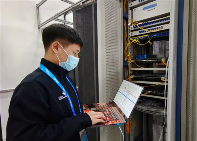 北京冬奧會(huì)期間,董天賜在八達(dá)嶺國(guó)際會(huì)展中心機(jī)房工作場(chǎng)景