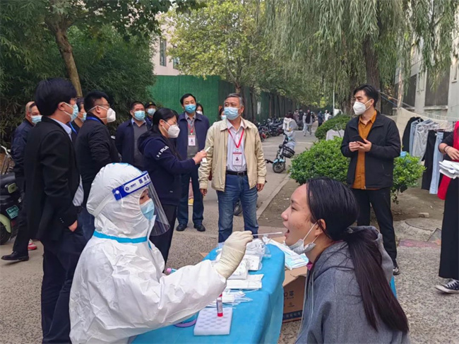 校領(lǐng)導(dǎo)每日深入到學(xué)生中間,早上查看學(xué)生核酸檢測(cè)、生活飲食,下午關(guān)心學(xué)生校園生活狀況,晚間走進(jìn)學(xué)生宿舍,耐心解答學(xué)生學(xué)習(xí)、生活中遇到的困難。無(wú)論是白天還是夜晚,都讓人感到內(nèi)心暖暖、信心滿滿!