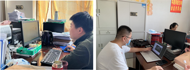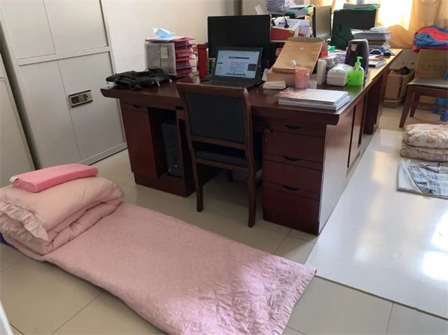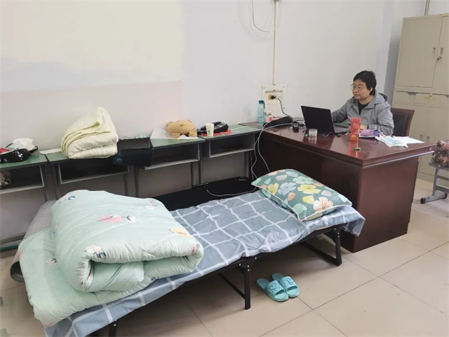 他們堅(jiān)守抗疫一線,同時(shí)不耽誤本職工作,抗疫之余,在辦公室里辦公、與學(xué)生線上開班會(huì)、線上教學(xué)。