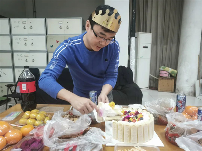 怕封在家里,學(xué)工隊(duì)伍第一時(shí)間入住學(xué)校,恰逢音樂舞蹈學(xué)院和進(jìn)旭老師生日,大家在園區(qū)一起過了簡(jiǎn)單的生日。