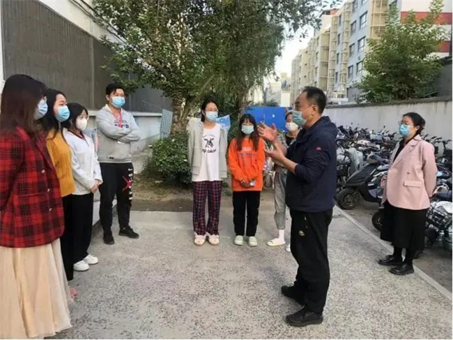 每天下午和晚上,音樂舞蹈學(xué)院學(xué)工隊(duì)伍在國(guó)基生活園區(qū)巡邏,在園區(qū)內(nèi)督促學(xué)生戴口罩,不聚集,不聚餐等。