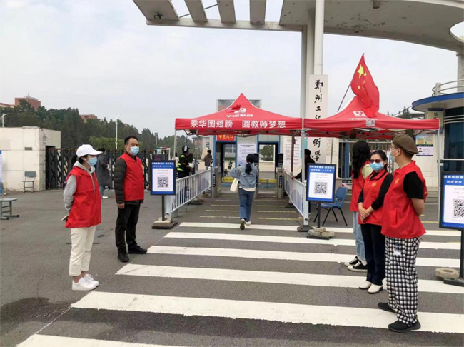 校團(tuán)委組織以入團(tuán)積極分子、團(tuán)員、入黨積極分子為骨干的青年志愿者隊(duì)伍,在四個(gè)校區(qū)開展校園文明行為督導(dǎo)。每天從7點(diǎn)半到晚上9點(diǎn)半在校園內(nèi)督促學(xué)生正確佩戴口罩、出入場(chǎng)所掃碼。(鄭州工程技術(shù)學(xué)院供稿)