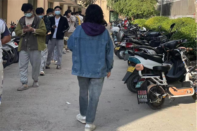 整齊排列的做核酸檢測(cè)的隊(duì)伍、靜默管理的宿舍樓、食堂的入口處,都有身穿經(jīng)貿(mào)學(xué)院紅色馬甲們忙碌的身影。