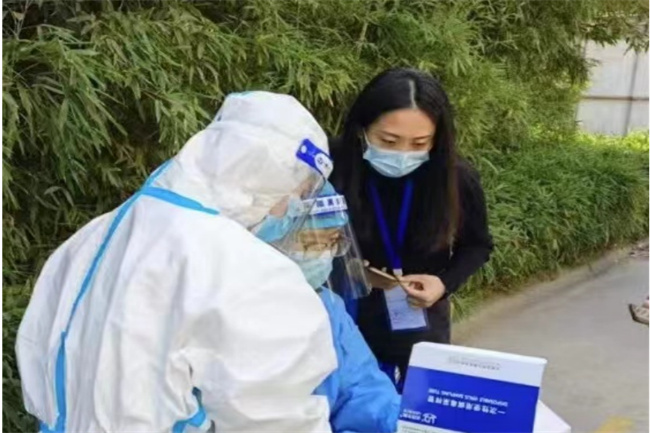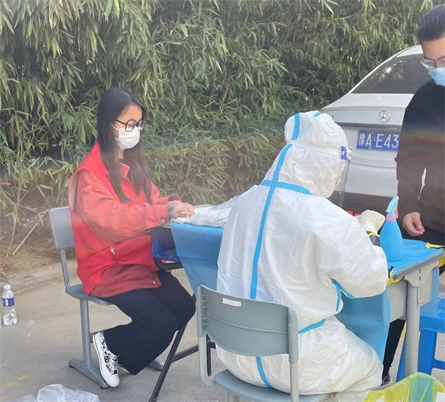 分團(tuán)委副書(shū)記孫琳老師協(xié)助核酸檢測(cè)