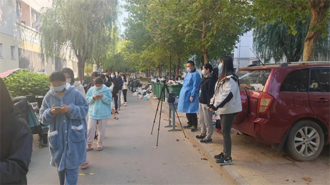學(xué)生第一、第二黨支部教工黨員聞聲而起,繼五月疫情后,又一次“駐”校工作,帶領(lǐng)支部學(xué)生黨員、入黨積極分子在國基生活園區(qū)做起疫情防控工作志愿者:開展核酸檢測秩序維護(hù)、生活園區(qū)安全巡視、核酸掃碼、勸阻不戴口罩的學(xué)生、宣傳科學(xué)防疫知識等工作,于細(xì)微行動處,彰顯青年擔(dān)當(dāng),為學(xué)生們的安全保駕護(hù)航。