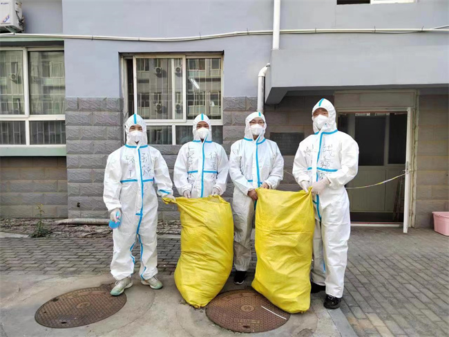 靠著這種必勝的信念,隊員們迎難而上,各項工作有序開展。隊員們逐步接收安置60余名隔離人員,同時開展分發(fā)物資、送餐、清理生活垃圾等工作。他們穿著密不透風(fēng)的防護服一次次步行穿梭在1樓至6樓之間,汗水浸透了衣服,腿腳已經(jīng)酸疼,也沒有停下服務(wù)的腳步。