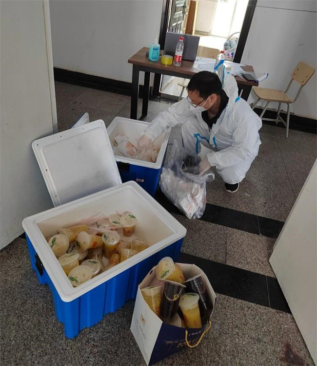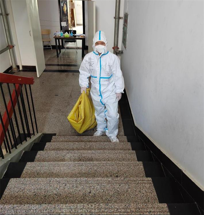 在隔離點服務(wù),每天送餐、處理生活垃圾、發(fā)放藥品、人員轉(zhuǎn)運等都需要跟密接或次密接人員打交道,風(fēng)險肯定大過其它地方。范龍不斷叮囑大家做好自身防護,注重細節(jié),注重工作方法,倍加關(guān)愛隔離中的師生。他說,只要我們堅定信心、堅持不懈,就一定能打贏這場疫情防控攻堅戰(zhàn)。
