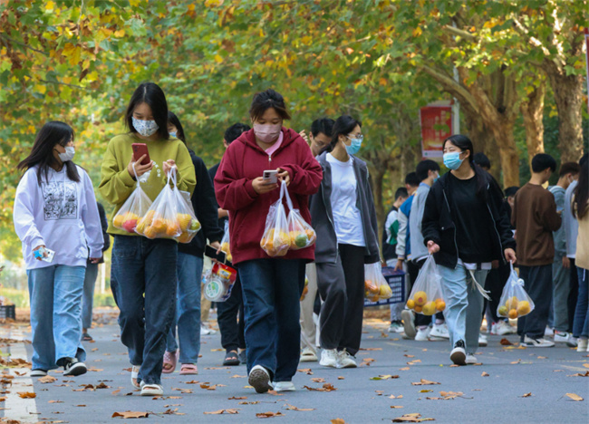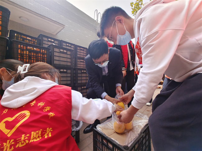 為了更好的滿足封控期間學(xué)生的營(yíng)養(yǎng)需求,讓同學(xué)們切實(shí)感受到學(xué)校的關(guān)懷,11月2日下午,學(xué)校后勤服務(wù)中心協(xié)調(diào)學(xué)生餐廳一樓的河南品中餐飲管理有限公司,克服鄭州市物資緊缺、供應(yīng)鏈緊張等重重困難,向全體在校生及三保人員免費(fèi)發(fā)放了共計(jì)32400斤水果,為封閉在校的同學(xué)們送去一份溫暖。