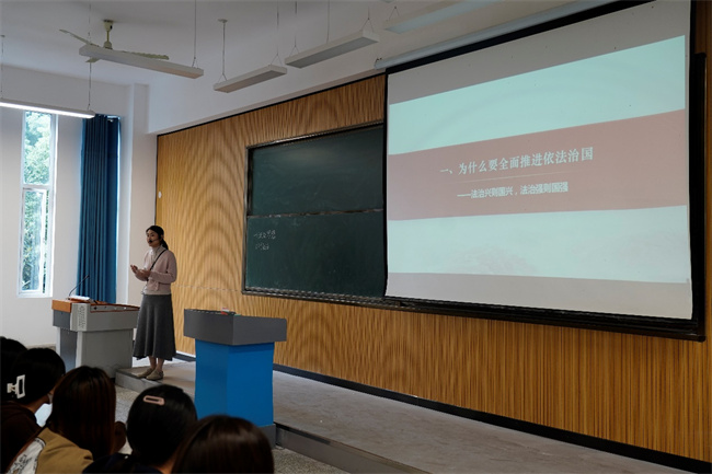 溫道軍聽取了馬克思主義學(xué)院楊子櫻教師的現(xiàn)場教學(xué),楊子櫻通過引用生動(dòng)詳實(shí)的案例和視頻講述《全面推進(jìn)依法治國》,使學(xué)生清晰了解到從法“制”到法“治”的轉(zhuǎn)變,營造了內(nèi)容豐富、輕松活躍的課堂教學(xué)氛圍。課后,溫道軍與授課教師進(jìn)行深入交流,對教師認(rèn)真的教學(xué)態(tài)度、豐富的教學(xué)內(nèi)容、多樣的教學(xué)手段表示肯定。他強(qiáng)調(diào),要深入學(xué)習(xí)貫徹黨的二十大報(bào)告中關(guān)于教育、科技、人才方面的論述,緊緊圍繞“立德樹人”根本任務(wù),堅(jiān)持“八個(gè)相統(tǒng)一”,不斷創(chuàng)新教學(xué)方法,提升學(xué)生的學(xué)習(xí)積極性和課堂活躍度,使思政課真正成為學(xué)生喜聞樂見、終身受益的課程。