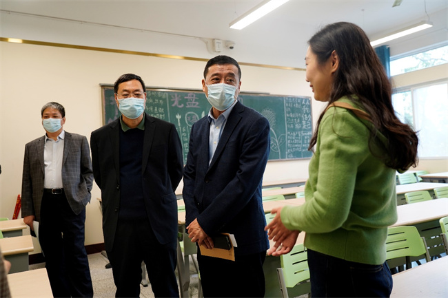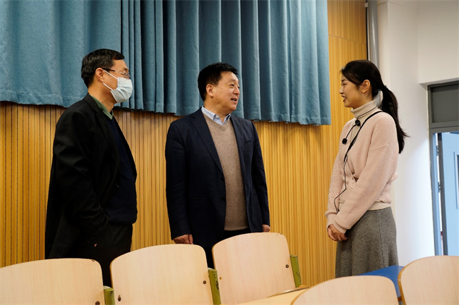 王偉聽取了馬克思主義學(xué)院郭靜老師的《思想道德與法治Ⅰ》課,郭靜以《堅(jiān)定信仰信念信任信心》為題,教導(dǎo)學(xué)生在學(xué)習(xí)、實(shí)踐中,真學(xué)真懂真信真用馬克思主義,在生活中要讀原著、學(xué)原文、悟原理。王偉詳細(xì)記錄了課堂教學(xué)要點(diǎn),查看教學(xué)文件,對郭靜的教學(xué)態(tài)度、教學(xué)內(nèi)容、教學(xué)方法以及教學(xué)效果給予肯定。他指出,廣大思政課教師要認(rèn)真研究設(shè)計(jì)思政課教學(xué)內(nèi)容,創(chuàng)新教學(xué)方式方法,增強(qiáng)教學(xué)的吸引力、感染力,不斷提升思政課教學(xué)質(zhì)量和水平。