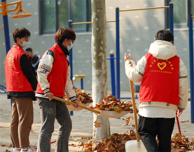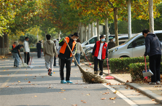 在此次活動(dòng)中,各學(xué)院志愿者服務(wù)隊(duì)陸續(xù)開(kāi)展校園落葉清掃、雜草清除等清潔工作,從“心”開(kāi)始,從“細(xì)”著手,讓校園煥然一新,為學(xué)校師生的學(xué)習(xí)生活和疫情防控工作做好保障。