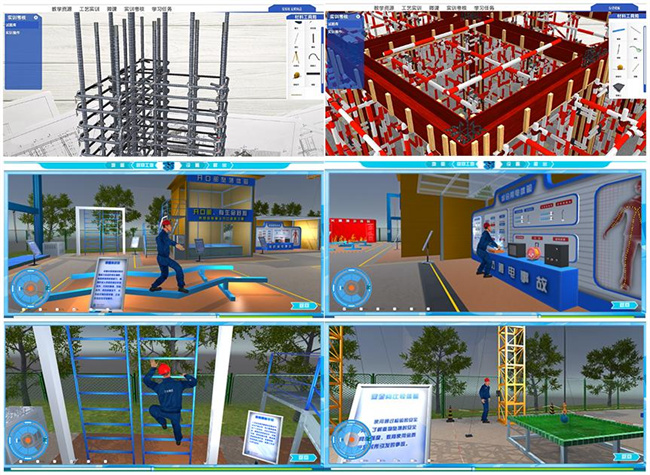 “四元融通”聯(lián)合開(kāi)發(fā)理虛實(shí)一體化教學(xué)資源,以虛助實(shí),突破難點(diǎn)。利用BIM技術(shù)虛實(shí)結(jié)合的特點(diǎn),聯(lián)合河南建協(xié)、中建七局、中鐵二十局、河南天工、廊坊中科、廣州中望、北京廣聯(lián)達(dá)、西安三好等行業(yè)、企業(yè)、證書(shū)、競(jìng)賽的相關(guān)方,開(kāi)發(fā)崗課賽證“四元融通”特色的虛擬仿真教學(xué)資源。對(duì)接BIM基礎(chǔ)應(yīng)用、專項(xiàng)應(yīng)用、綜合管理等崗位群,基于真實(shí)工程項(xiàng)目、典型安全事故、復(fù)雜工序,開(kāi)發(fā)《基礎(chǔ)工程施工》等理虛實(shí)一體的模塊化課程18門、方艙醫(yī)院等工程項(xiàng)目仿真33個(gè)、洞口墜落等安全事故仿真63個(gè)、異形屋面等復(fù)雜工序仿真782個(gè),融入免共振微擾動(dòng)沉樁等“建筑五新”85項(xiàng),有效解決建筑實(shí)訓(xùn)高風(fēng)險(xiǎn)、難再現(xiàn)、高消耗等痛點(diǎn)。同時(shí),開(kāi)發(fā)楊靖宇革命紀(jì)念館等紅色教育仿真資源34個(gè)、時(shí)光寶盒國(guó)寶文物等素質(zhì)教育仿真資源15個(gè)、云上鄒莊美麗鄉(xiāng)村等課程思政仿真資源45個(gè),有效解決公共基礎(chǔ)課教學(xué)的應(yīng)用場(chǎng)景難實(shí)施、難觀摩、高投入等痛點(diǎn)。應(yīng)用BIM技術(shù)以虛助實(shí),有景、有趣、有效、有用,突破理實(shí)一體化的難點(diǎn),形成了理虛實(shí)一體的模塊化、系統(tǒng)化虛擬仿真實(shí)訓(xùn)體系。