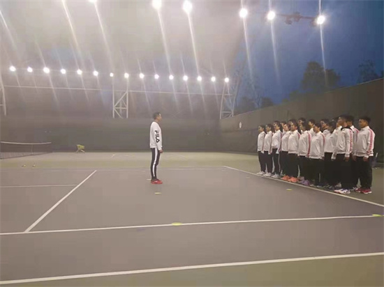 夜色如墨,寒意漸濃,學(xué)校網(wǎng)球場仍一片熱鬧景象,向云平老師正帶領(lǐng)隊(duì)員們加訓(xùn)。“在你最困難的時(shí)候,唯一要做的就是再堅(jiān)持一下。不管摔倒了多少次,希望同學(xué)們不要失去站起來的勇氣。”向老師鏗鏘有力、擲地有聲的話語點(diǎn)燃了在場每一位運(yùn)動(dòng)健兒的激情。