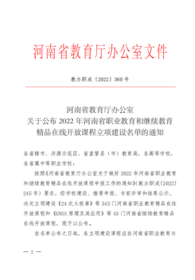8門課程入選2022年河南省職業(yè)教育和繼續(xù)教育精品在線開(kāi)放課程立項(xiàng)建設(shè)