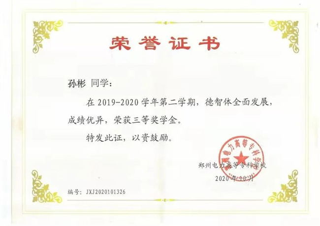 2019年,孫彬被錄取到鄭州電力高等?茖W(xué)校經(jīng)濟(jì)管理學(xué)院物流管理專業(yè)。他積極上進(jìn),勇于擔(dān)當(dāng),作為新時(shí)代的青年大學(xué)生,他立志成為能夠擔(dān)當(dāng)民族復(fù)興大任的時(shí)代新人。在校期間,他在思想上始終嚴(yán)格要求自己,不斷加強(qiáng)自身的政治理論學(xué)習(xí),擔(dān)任班級(jí)宣傳委員職務(wù)期間,他始終堅(jiān)定正確的政治方向,擁護(hù)黨的各項(xiàng)方針政策,擁有創(chuàng)新精神,積極將自己的創(chuàng)新思想與同學(xué)和老師們分享。他說:“只有心中有信仰,才能知道自己腳下路的方向;只有心中有信念,才能無懼創(chuàng)新路上的荊棘坎坷。”