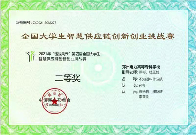 第四屆全國大學(xué)生智慧供應(yīng)鏈創(chuàng)新創(chuàng)業(yè)挑戰(zhàn)賽(團(tuán)體賽)二等獎(jiǎng)(排名第一)
