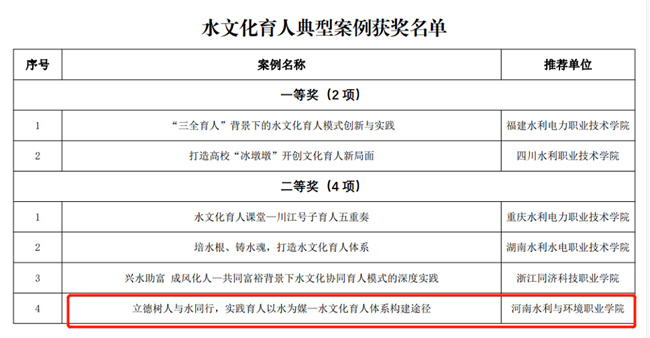 河南水利與環(huán)境職業(yè)學(xué)院獲全國水文化育人典型案例評選佳績