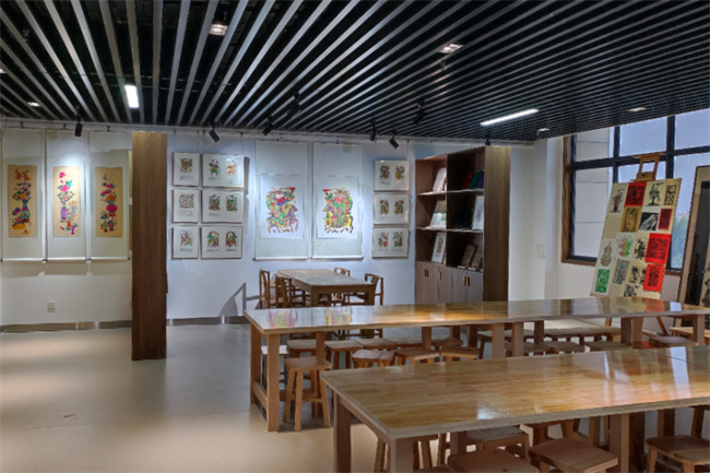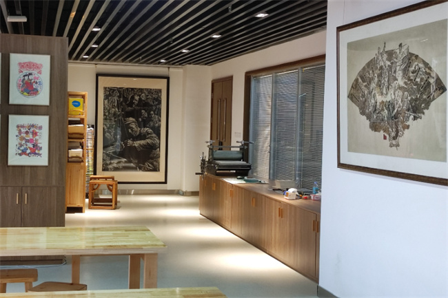 河南職業(yè)技術(shù)學(xué)院版畫與印刷體驗(yàn)工作室(郝彥杰技能大師工作室),既是專業(yè)課程實(shí)訓(xùn)教學(xué)場(chǎng)所,又是版畫藝術(shù)展示空間,濃厚的藝術(shù)氣息撲面而來(lái)。“工作室建成于2017年底,是應(yīng)學(xué)院創(chuàng)新發(fā)展行動(dòng)計(jì)劃整體規(guī)劃而建設(shè)的,既是版畫創(chuàng)作技藝傳承與現(xiàn)代藝術(shù)設(shè)計(jì)素養(yǎng)培養(yǎng)的教學(xué)基地,也承擔(dān)文化育人與技藝傳承的功能。”