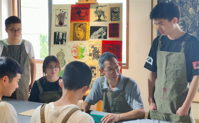 除日常授課外,每年,郝彥杰都會(huì)依托工作室,組建版畫興趣小組,看到學(xué)生們?nèi)諠u自如用刀的狀態(tài),他倍感欣慰。秉持初心,作為中國(guó)美術(shù)家協(xié)會(huì)會(huì)員、河南省美術(shù)家協(xié)會(huì)版畫藝委會(huì)副秘書長(zhǎng),郝彥杰業(yè)余時(shí)間積極參與社會(huì)活動(dòng),多次擔(dān)任省市美術(shù)專業(yè)項(xiàng)目展賽評(píng)委,并深入到小學(xué)校園為美術(shù)教師們開(kāi)展黑白木刻講座及實(shí)訓(xùn)指導(dǎo),樂(lè)此不疲。“以版畫創(chuàng)作、推廣傳播為切入點(diǎn),助力校園文化建設(shè),響應(yīng)學(xué)校打造多元化河職品牌的號(hào)召,把工作室建成民族藝術(shù)氣息濃郁、藝術(shù)設(shè)計(jì)特點(diǎn)強(qiáng)烈的教學(xué)環(huán)境,使之成為藝術(shù)設(shè)計(jì)專業(yè)學(xué)生藝術(shù)素養(yǎng)培養(yǎng)拓展平臺(tái),可對(duì)外開(kāi)放、展示、宣傳,成為對(duì)外交流的文化窗口,為學(xué)院的發(fā)展多做貢獻(xiàn)的同時(shí),也能影響一批年輕學(xué)子喜歡木刻版畫,助力傳承木刻版畫,這是我未來(lái)努力的方向。”(河南職業(yè)技術(shù)學(xué)院供稿)