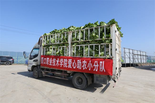 得知該基地的困難后,周口職業(yè)技術(shù)學(xué)院把愛(ài)心助農(nóng)的首站放到了這里。11月24日,當(dāng)周口職業(yè)技術(shù)學(xué)院后勤處長(zhǎng)王愛(ài)東帶領(lǐng)的助農(nóng)小分隊(duì)到達(dá)時(shí),沈丘縣縣長(zhǎng)余長(zhǎng)坤已經(jīng)等候多時(shí)。一見(jiàn)面,他就拉著王愛(ài)東的手表示感謝,對(duì)學(xué)校開(kāi)展的助農(nóng)行動(dòng)贊賞有加,并叮囑隨行的政府部門(mén)有關(guān)負(fù)責(zé)人,一定做好對(duì)接工作,齊心協(xié)力幫助農(nóng)民打開(kāi)蔬菜銷(xiāo)路。