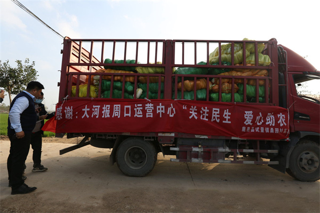 中新河南網(wǎng)11月25日電(于揚(yáng) 李玉坤 郭磊) “大家做好防護(hù),路上注意安全,出發(fā)吧!”11月24日一大早,晨霧朦朦中,在周口職業(yè)技術(shù)學(xué)院后勤處的帶領(lǐng)下,兩輛貨車(chē)從開(kāi)元校區(qū)大門(mén)口出發(fā),分別駛向周口市的沈丘縣、鹿邑縣,直奔農(nóng)民的田間地頭,采購(gòu)銷(xiāo)售困難的蔬菜。當(dāng)天,由該校開(kāi)元校區(qū)、中州校區(qū)、文昌校區(qū)等三個(gè)校區(qū)餐廳負(fù)責(zé)人組成的愛(ài)心小分隊(duì),共計(jì)購(gòu)買(mǎi)愛(ài)心蔬菜2.5萬(wàn)斤。