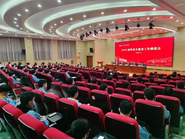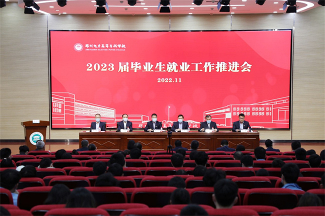 中新河南網(wǎng)11月26日電(李安杰) 為深入學(xué)習(xí)貫徹黨的二十大精神,傳達(dá)落實2023屆全國普通高校畢業(yè)生就業(yè)創(chuàng)業(yè)工作網(wǎng)絡(luò)視頻會議要求,11月23日,鄭州電力高等?茖W(xué)校召開2023屆畢業(yè)生就業(yè)工作推進(jìn)會,總結(jié)回顧2022屆就業(yè)工作,梳理分析2023屆就業(yè)工作形勢任務(wù),安排部署2023屆就業(yè)工作思路舉措,統(tǒng)一凝聚進(jìn)一步做好2023屆就業(yè)工作的思想行動,確保2023屆畢業(yè)生更加充分更高質(zhì)量就業(yè)工作如期進(jìn)行、按期推進(jìn)、務(wù)期必成。鄭州電力高等專科學(xué)校黨委書記楊義波、校長楊建華等校領(lǐng)導(dǎo)班子成員,學(xué)生處、教務(wù)處、團(tuán)委等相關(guān)職能部門負(fù)責(zé)人、學(xué)院書記、院長、全體輔導(dǎo)員及2023屆畢業(yè)生代表參加會議,鄭州電力高等?茖W(xué)校黨委委員、副校長黃鵬主持會議。