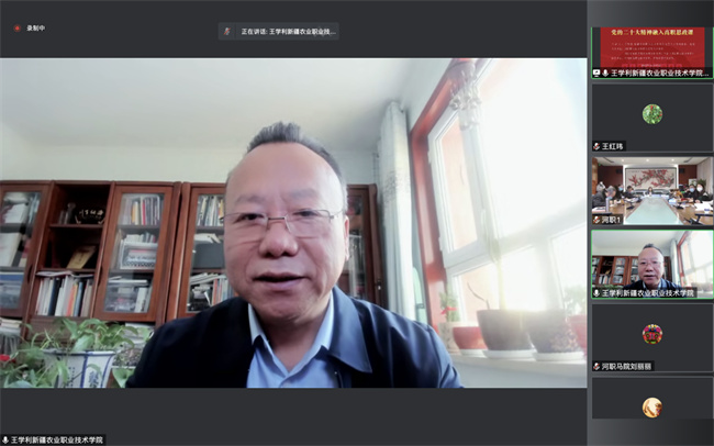 新疆農(nóng)業(yè)職業(yè)技術(shù)學(xué)院馬克思主義學(xué)院院長(zhǎng)王學(xué)利教授作了《黨的二十大精神融入高職思政課的幾點(diǎn)思考》專(zhuān)題講座。他從全面認(rèn)識(shí)黨的二十大報(bào)告邏輯結(jié)構(gòu)、把中國(guó)化時(shí)代化的馬克思主義融入高職思政課作為重點(diǎn)和給誰(shuí)教怎樣教問(wèn)題上下功夫等三個(gè)方面系統(tǒng)講授了把黨的二十大精神融入思政課應(yīng)把握的重點(diǎn)內(nèi)容,并結(jié)合職業(yè)教育的類(lèi)型特征,提出思政課教師要針對(duì)學(xué)生不同的性格稟賦、興趣特長(zhǎng)、素質(zhì)潛力,因材施教,打造良好的思政課教學(xué)生態(tài),在德技并修、工學(xué)結(jié)合上下功夫,努力為國(guó)家培養(yǎng)更多高素質(zhì)的技術(shù)技能人才。