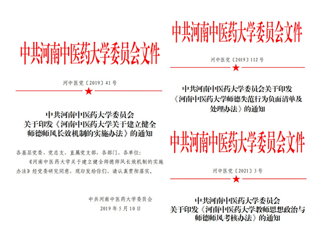 1.師德建設(shè)強勁有力。加強師德師風(fēng)建設(shè),于2020年成立教師工作部,出臺《關(guān)于建立健全師德師風(fēng)長效機制的實施辦法》《教職工榮譽體系設(shè)置方案》《教師思想政治與師德師風(fēng)考核辦法》《師德失范行為負面清單及處理辦法》等制度,構(gòu)建長效機制,樹立鮮明導(dǎo)向。堅持以德為先,將師德納入教師考核評價體系,考核結(jié)果貫穿于教師職務(wù)晉升、職稱評審、評比獎勵等環(huán)節(jié),嚴格執(zhí)行師德師風(fēng)“一票否決”制。持續(xù)開展師德師風(fēng)主題教育,積極開展“出彩中醫(yī)人”“我心目中的好導(dǎo)師”“仲景教學(xué)名師”等評選活動。該校涌現(xiàn)出“全國優(yōu)秀教師”邵素菊、張琳琪,“全國醫(yī)德標兵”張懷亮,“出彩河南人‘最美教師’”崔姍姍,河南省首屆“醫(yī)德醫(yī)風(fēng)模范”牛朝陽,河南省高校黃大年式教師團隊——“中藥學(xué)教師團隊”等一大批醫(yī)德師德高尚的教師群體。