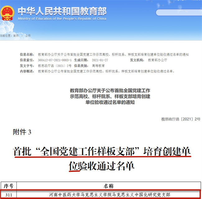 (馬克思主義中國化研究黨支部榮獲首批全國黨建工作樣板支部培育創(chuàng)建單位,并于2021年順利通過驗收)