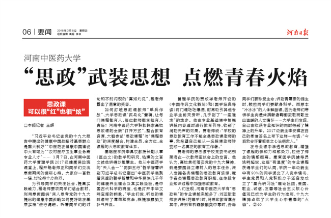 (《河南日報》報道學(xué)校課程思政改革成效)