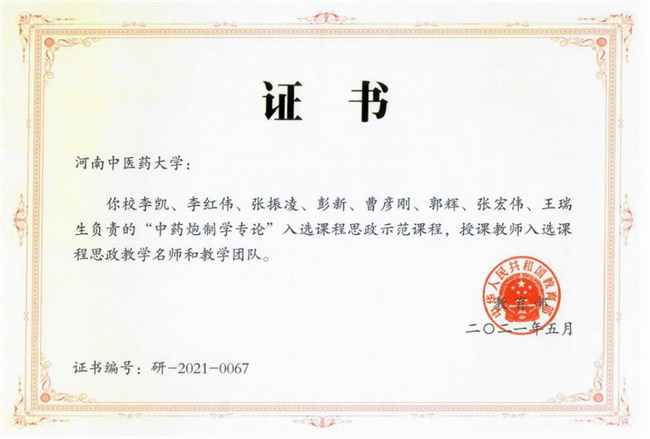 (《中藥炮制學(xué)專論》入選教育部首批課程思政示范項目)