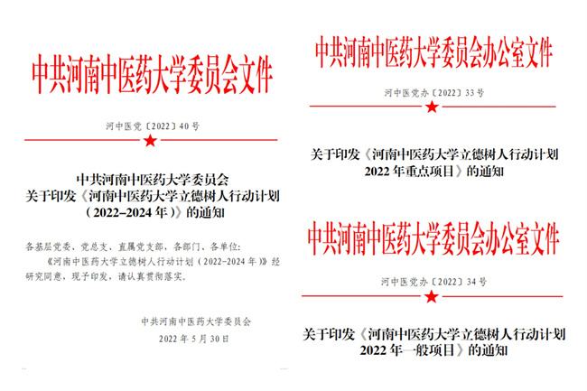 1.推進思政課改革,在提質(zhì)增效上下功夫。2017年,思想政治理論教研部更名為馬克思主義學(xué)院,健全領(lǐng)導(dǎo)班子,著力推動思政課改革創(chuàng)新。突出思政課教學(xué)“生活化”,堅持每日時政熱點“天天講”,探索本科生“三動三實”教學(xué)模式和研究生思政課“雙研雙導(dǎo)”教學(xué)方法,形成思政課堂、實踐課堂、網(wǎng)絡(luò)課堂、社會課堂“四課堂聯(lián)動”。注重將馬克思主義哲學(xué)史和中醫(yī)發(fā)展史結(jié)合,打造充滿藥草香的思政課,讓思政課有料有味。構(gòu)建形成了“知信行合一”思政育人新模式,切實推進黨的創(chuàng)新理論“三進”工作在該校落地生根。馬克思主義中國化研究黨支部榮獲首批全國黨建工作樣板支部培育創(chuàng)建單位,于2021年順利通過驗收,并獲評河南省本科高等學(xué)校優(yōu)秀基層教學(xué)組織。“中醫(yī)藥與經(jīng)濟社會發(fā)展研究中心”成功入選河南省首批新型特色智庫建設(shè)名單。