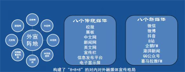 (三)加強宣傳引導(dǎo),打造網(wǎng)絡(luò)育人“新高地”。學(xué)校宣傳思想工作堅持因事而化、因時而進、因勢而新,緊緊把握學(xué)生思想動向和媒體發(fā)展趨勢,促進媒體融合,不斷健全思想輿論、內(nèi)宣外宣、網(wǎng)上網(wǎng)下相貫通的育人體系。2017年設(shè)立新聞中心,與宣傳部合署辦公。2018年5月,校報記者站更名為校新媒體(校報)記者團。同年,校園網(wǎng)升級改版,建設(shè)新聞網(wǎng),一體推進“雙微”建設(shè)。在做好內(nèi)宣的同時,積極拓展外宣空間。2018年,該校微信公眾號入駐“大河網(wǎng)”“大河號”欄目;2019年,中文網(wǎng)入駐中宏網(wǎng)“出彩河南”欄目;2021年,該校正式入駐“頂端新聞”,中文網(wǎng)鏈接同時入駐中華網(wǎng)、中華高校網(wǎng)、河南高校資訊網(wǎng)3家網(wǎng)站欄目首屏頭條。精心打造 8個外宣陣地、8個傳統(tǒng)媒體平臺、8個新媒體平臺建設(shè),構(gòu)建了“四級聯(lián)動”融媒體宣傳矩陣。官方微信粉絲達8.4萬人,官方微信發(fā)布推文3800余篇,原創(chuàng)微信推文達1000余篇;新浪官方微博粉絲近5.2萬人,發(fā)布推文近3.9萬條。微博、微信排名常年位居全國同類院校及全省本科院校前列,官方微博排名位居河南省本科院校政務(wù)微博首位,被省委教育工委、省教育廳確定為“教育新媒體工作考核優(yōu)秀單位”。2019年學(xué)校獲批“全省網(wǎng)絡(luò)文化建設(shè)試點高校”,先后斬獲“河南省教育融媒體創(chuàng)作基地”“全省高校‘融媒體+育人工作’培育單位”等多項稱號。