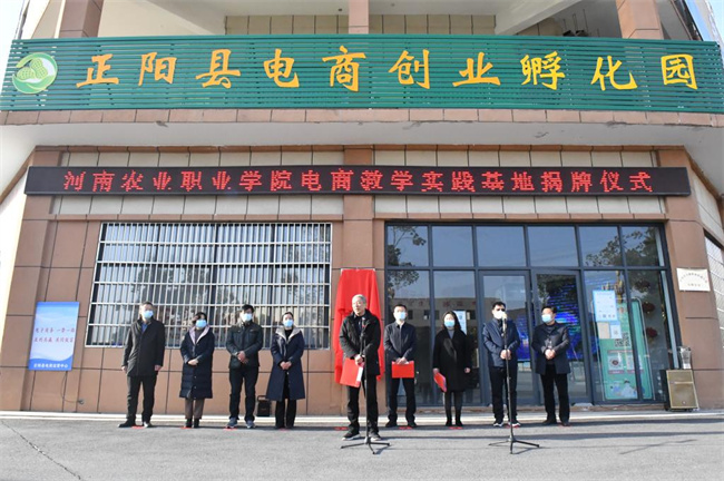 陳建軍、張鵬共同為河南農(nóng)業(yè)職業(yè)學(xué)院電商教學(xué)實(shí)踐基地揭牌。