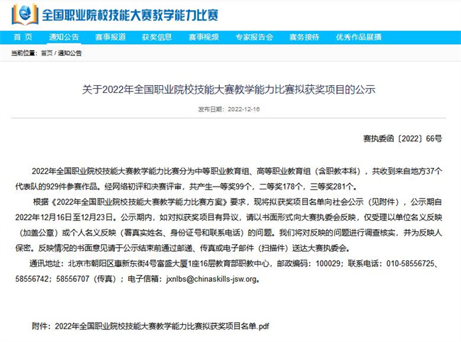 全國職業(yè)院校技能大賽教學(xué)能力比賽是由教育部主辦的代表職業(yè)院校最高教學(xué)水平的權(quán)威比賽,是展示職業(yè)院校教師教學(xué)能力的最高舞臺(tái),是各個(gè)職業(yè)院校最為重視的比賽,參賽教師團(tuán)隊(duì)經(jīng)歷初賽、復(fù)賽,從省賽中脫穎而出,以專業(yè)組第一名的成績沖擊國賽,經(jīng)過參賽團(tuán)隊(duì)的不懈努力,克服疫情、校園封閉管理等重重困難,最終以出色的發(fā)揮贏得了評(píng)委的一致好評(píng),榮獲全國一等獎(jiǎng)。