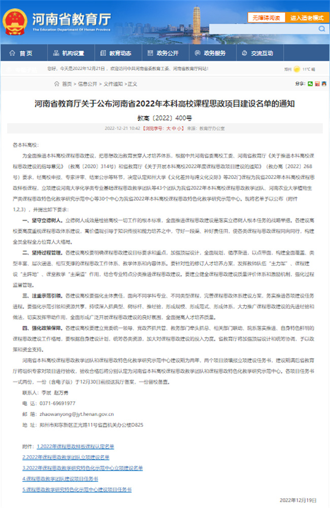 河南省教育廳關(guān)于公布河南省2022年本科高校課程思政項(xiàng)目建設(shè)名單的通知