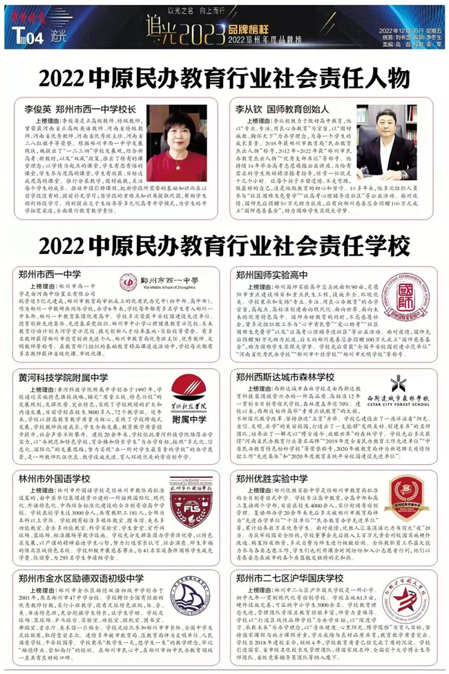 (林州市外國語學校榮獲“2022中原民辦教育行業(yè)社會責任學校”榮譽稱號)