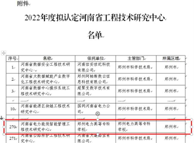 鄭州電力高等?茖W校獲批2022年度河南省工程技術研究中心