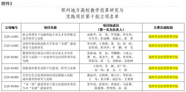 鄭州升達(dá)經(jīng)貿(mào)管理學(xué)院6個項目獲批鄭州地方高校教學(xué)改革研究與實踐項目立項