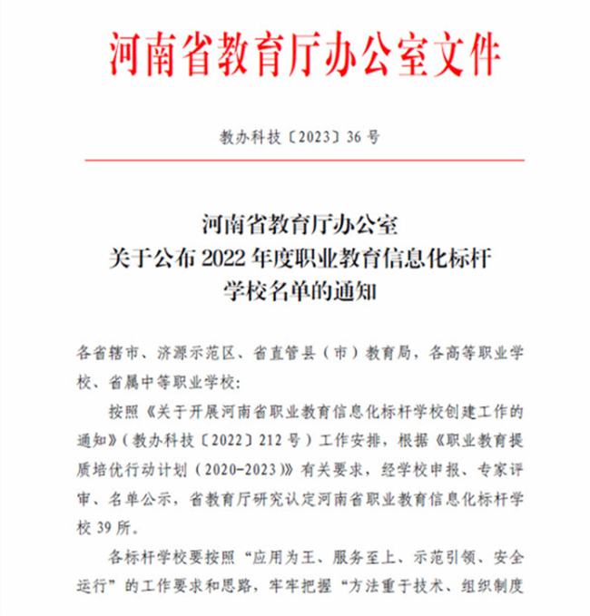 鄭州電力高等專科學校榮獲“河南省職業(yè)教育信息化標桿學!狈Q號