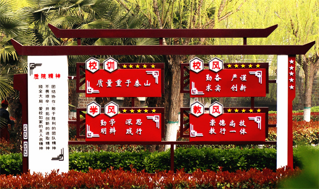 狠抓基礎(chǔ)建設(shè),增強(qiáng)環(huán)境育人功能。學(xué)院不斷完善圖書館、校史館、體育場、黨建活動中心建設(shè);投入1000余萬元進(jìn)行了校園綠化、道路升級、墻面翻新、照明亮化等。先后完成文化廣場升級改造和質(zhì)量廣場建設(shè);完成校園道路、樓宇命名、校園文化(標(biāo)識標(biāo)牌)系統(tǒng)建設(shè)。在標(biāo)識標(biāo)牌系統(tǒng)建設(shè)中,以弘揚“質(zhì)量重于泰山”的校訓(xùn)精神和“準(zhǔn)質(zhì)量度、善物世人”的辦學(xué)宗旨為核心,引入中華傳統(tǒng)質(zhì)量文化、大學(xué)精神為學(xué)院的道路、樓宇等科學(xué)命名,如:嘉量樓、明德樓、質(zhì)善路、準(zhǔn)衡路等,并制作精美標(biāo)牌,使師生處處感受到文化的熏陶和啟迪,大大豐富了校園文化的底色,提升了校園的文化層次。