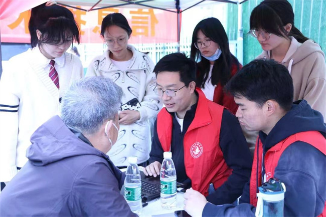 在河南中醫(yī)藥大學(xué)家屬院5號樓西側(cè),學(xué)校關(guān)工委、離退處、護(hù)理學(xué)院聯(lián)合開展了“學(xué)雷鋒 講奉獻(xiàn)”之“手拉手”志愿服務(wù)活動(dòng)。護(hù)理學(xué)院師生踴躍報(bào)名,建立了一支六十余人的志愿者隊(duì)伍,關(guān)工委、離退處的老師也積極參與其中。推拿、按摩、測量血壓、測量血糖、耳穴壓豆、急救知識講解……,現(xiàn)場豐富的服務(wù)內(nèi)容吸引不少退休教師以及居民前來咨詢、體驗(yàn),同學(xué)們熱情周到的志愿服務(wù)受到了陣陣好評。
