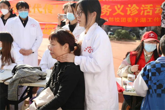 3月5日,中醫(yī)學(xué)院(仲景學(xué)院)在杏苑餐廳前開展“弘揚(yáng)雷鋒精神,撒播愛心火種”志愿服務(wù)活動(dòng),通過義診的方式惠及“三保”人員和同學(xué)們。針灸推拿學(xué)院開展“學(xué)思踐悟二十大,志愿服務(wù)在行動(dòng)”走基層便民送醫(yī)活動(dòng),團(tuán)隊(duì)來到周口市西華縣遲營鎮(zhèn)孫莊村開展義診、科普宣講、功法教學(xué)、推拿按摩等志愿服務(wù),受到當(dāng)?shù)厝罕娨恢潞迷u。
