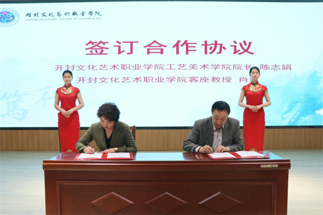 隨后,工藝美術學院院長陳志娟代表學校與肖紅簽訂合作協(xié)議,沈潔霞為肖紅教授頒發(fā)了聘書,楊克俊、劉震、沈潔霞、薛兆武、肖紅等共同上臺為肖紅大師工作室揭牌。