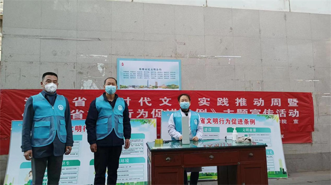 在學(xué)校家屬區(qū),行政黨總支黨員通過講解《河南省文明行為促進條例》展板,引導(dǎo)群眾養(yǎng)成文明習(xí)慣,樹立文明風尚。
